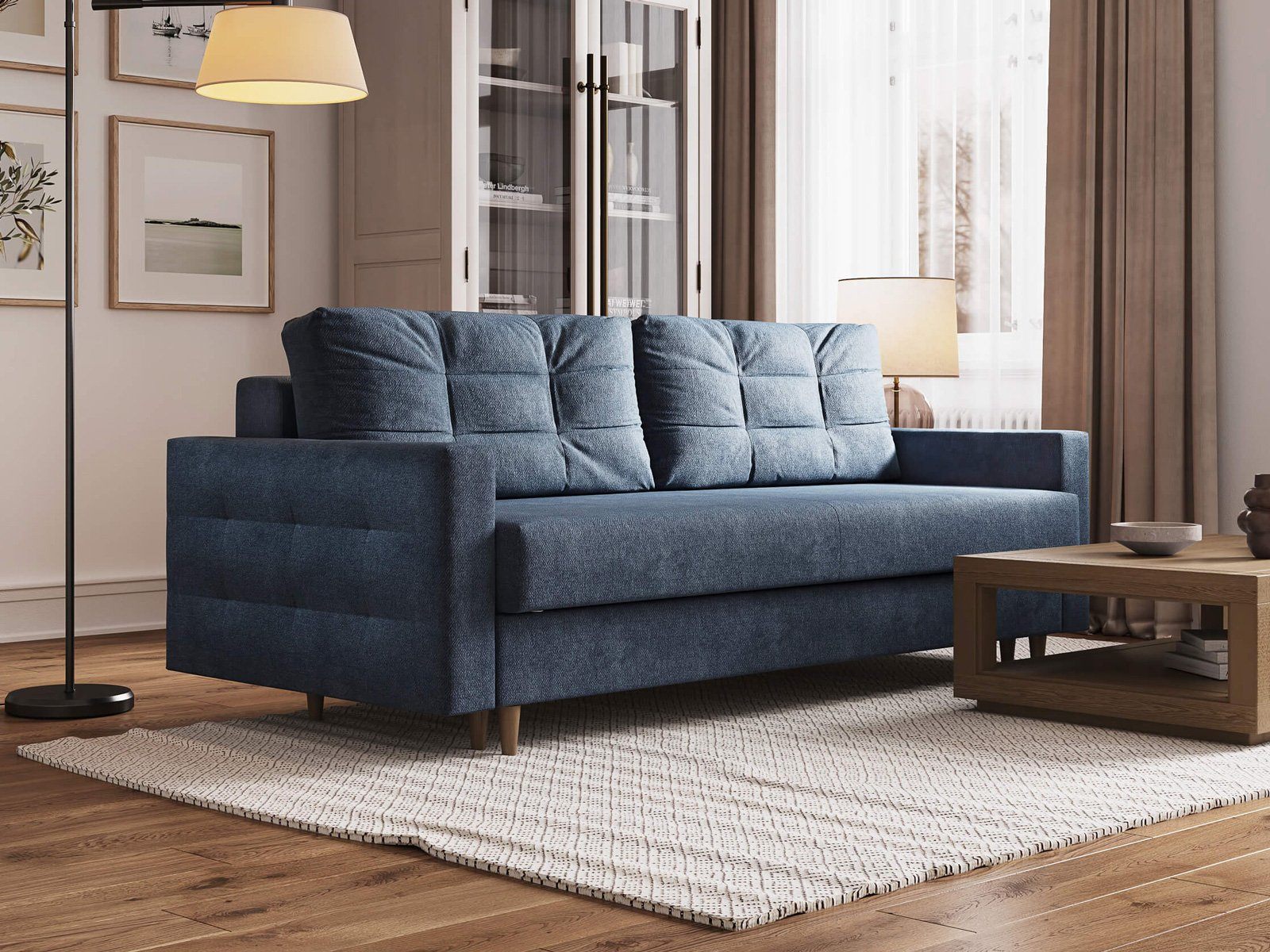 Современный диван Scandy с механизмом трансформации «Пантограф». В основе дивана полноценный ортопедический матрас на независимом пружинном блоке, усиленном слоем натуральной латексированной кокосовой коры. Комфортная глубина и высота сиденья обеспечит ежедневный комфорт. Задняя спинка защищает от прикосновения со стеной во сне, а стену – от возможных повреждений и загрязнений. В основе мягких подушек – микс наполнителей: поролоновая крошка защищает от деформации, а синтетическое волокно добавляет мягкость и упругость – для бережной поддержки спины. Подушки убираются во вместительный бельевой ящик с вентиляционным отверстием в разложенном состоянии дивана. Высокие элегантные опоры из массива (цвет на выбор - бук или венге) упростят уборку и позволяют работать современным роботам-пылесосам.