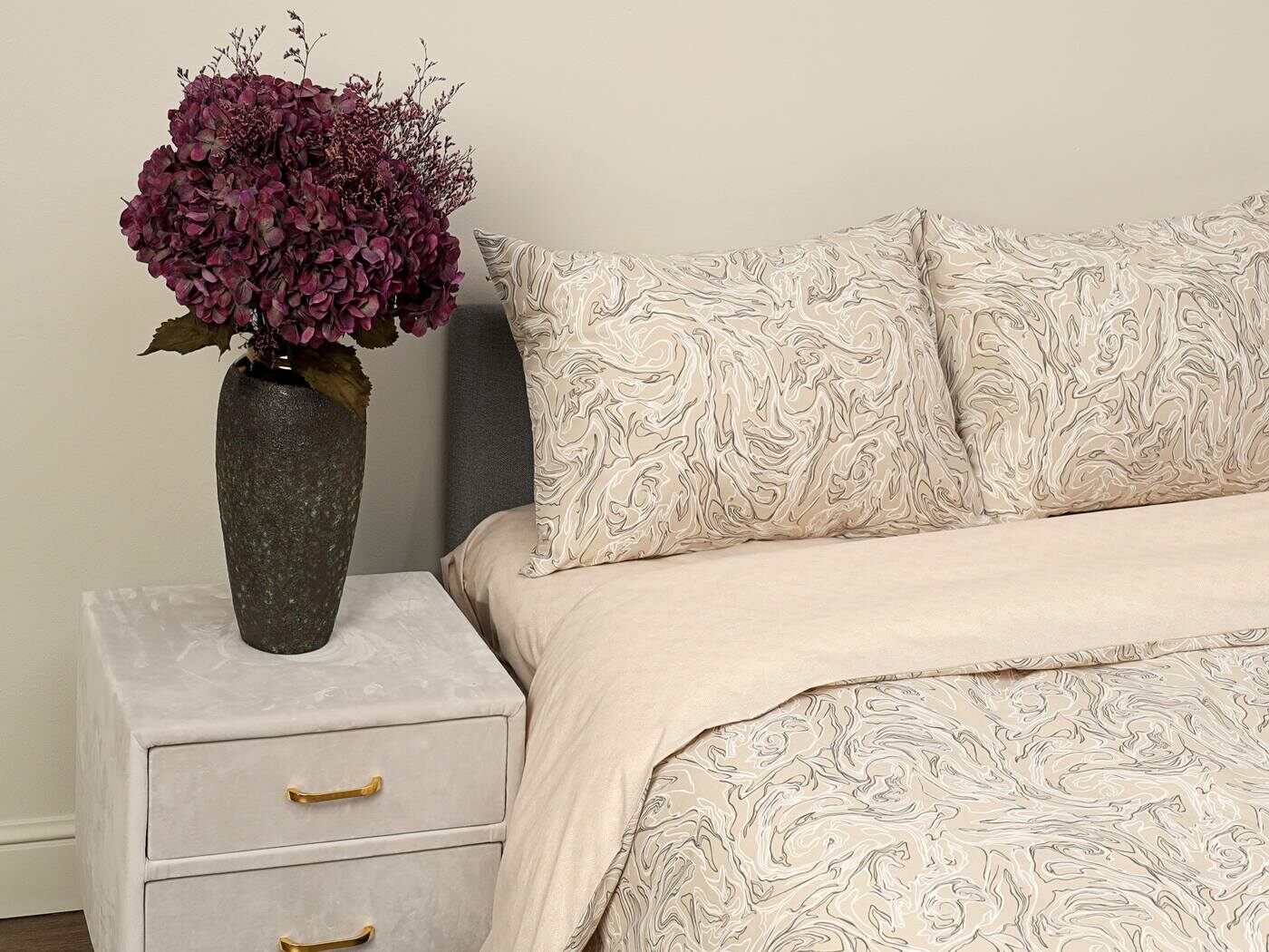 Комплект Мэгги легко стирается в обычной машине в бережном режиме и также легко гладится.