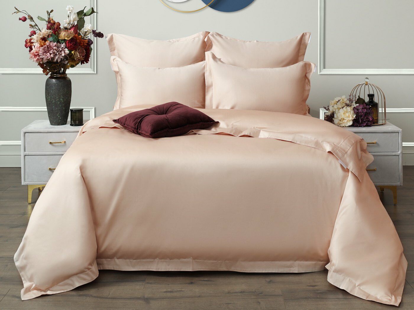 Натуральный состав из 100%-го хлопка обеспечивает гипоаллергенные свойства материала, он охлаждает в жаркую погоду и согревает в холодное время года. Мако-сатин плотностью 300ТС- является тканью класса люкс.