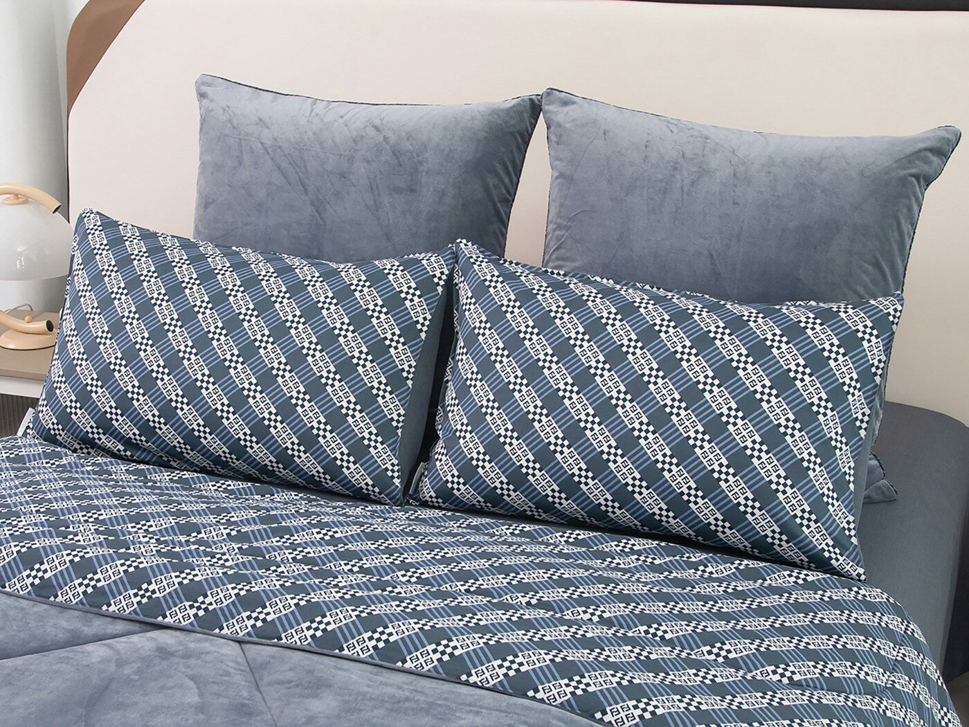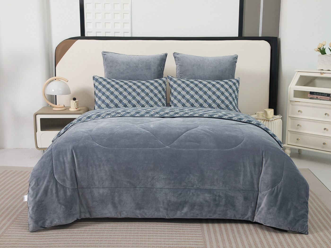 Новая коллекция комплектов «Роберто» с одеялом из однотонного велюра и принтованного сатина.