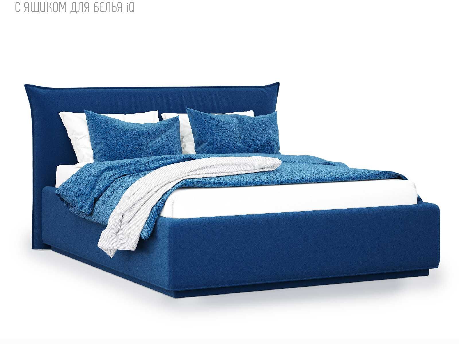 Кровать укомплектована IQ с подъемным механизмом и ящиком для белья без дна (дополнительная платная опция - дно к ящику IQ из HDF (ХДФ). Каркас кровати на цоколе, декоративный чехол на цоколе съёмный. Глубина ящика для белья - 30 см, без ограничения нагрузки на ящик.