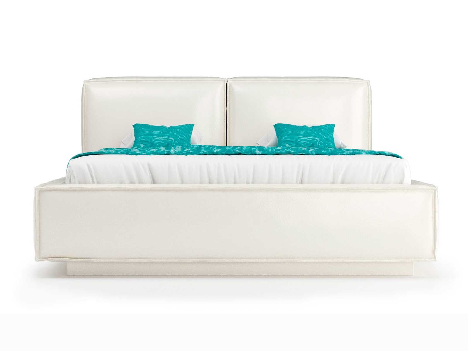 Изголовье выполнено в виде двух объемных прямых подушек, изготовленных по принципу подушек для диванов: умеренно-жесткая основа для поддержки спины во время отдыха и мягкий верхний слой из гипоаллергенного наполнителя с эффектом легкого утопания и свойствами быстрого восстановления первоначальной формы. Усилено 4-мя ножками.
