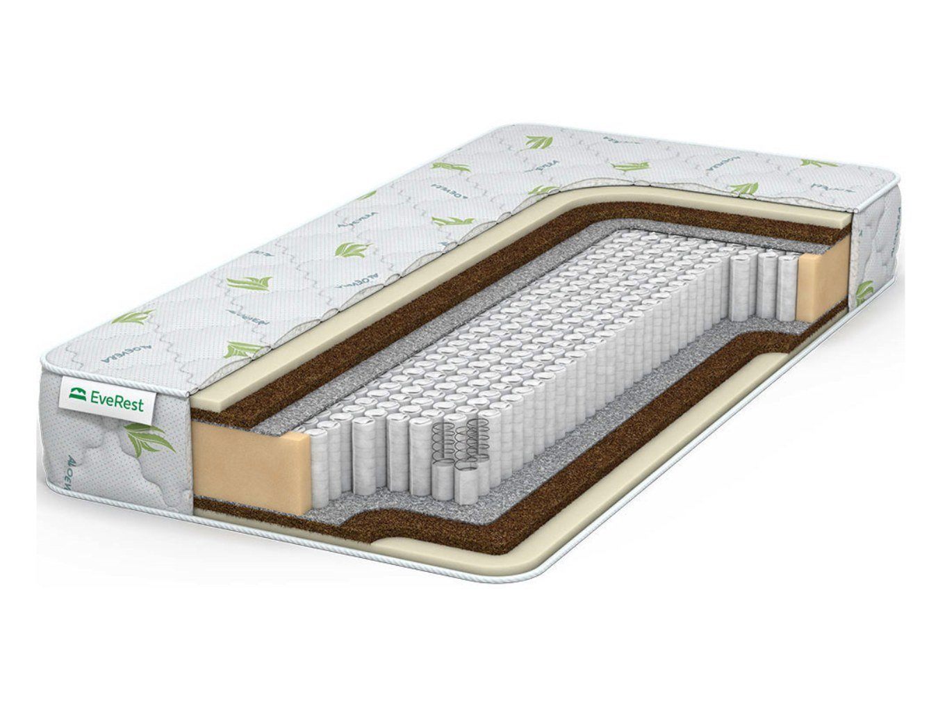 Модель поставляется в покрытии из трикотажа на основе хлопка. Чехол проходит специальную антибактериальную пропитку «Алоэ Вера» и получает объёмную и красивую стёжку со всех сторон матраса.
