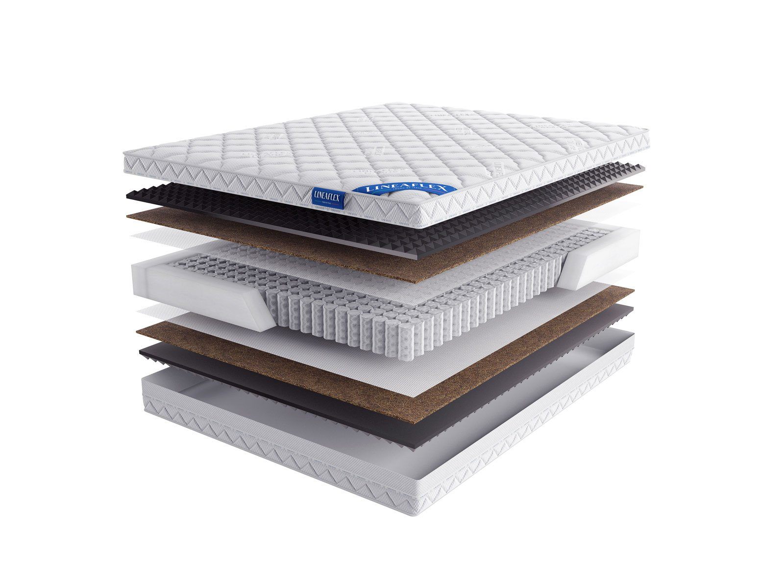 Мягкую пену поддерживает слой койры кокоса – жёсткой плиты с функцией ортопедической опоры. Материал не позволяет чрезмерно погрузиться в слои матраса и удержит спину и тело человека в естественном и физиологически правильном положении.