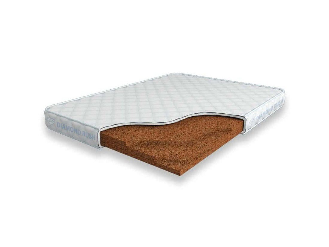 Матрас Diamond Rush Solid Cocos 9 DR является беспружинным, т.е. не имеет в своей основе пружинного блока. В его состав входят один или несколько слоев латексированной кокосовой койры. Это один из самых жестких материалов. Матрас, выполненный целиком из кокосовой койры, в меньшей степени обладает анатомическим эффектом.