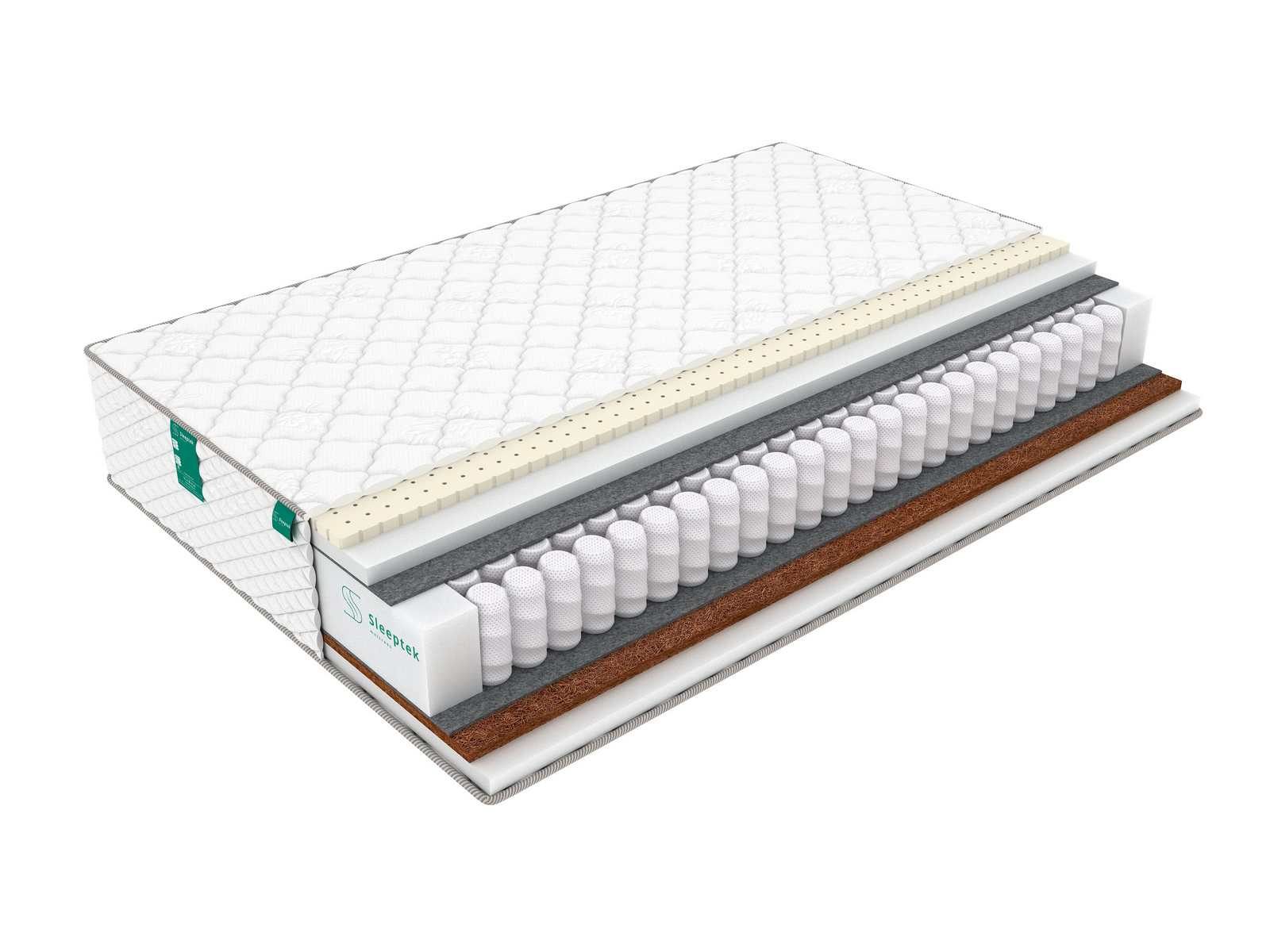 В качестве наполнителей с одной стороны использованы ортопедическая пена и койра кокоса. Койра усиливает ортопедические качества блока, а пена смягчает спальную поверхность и придает ей комфорт. Эта сторона более жесткая.
