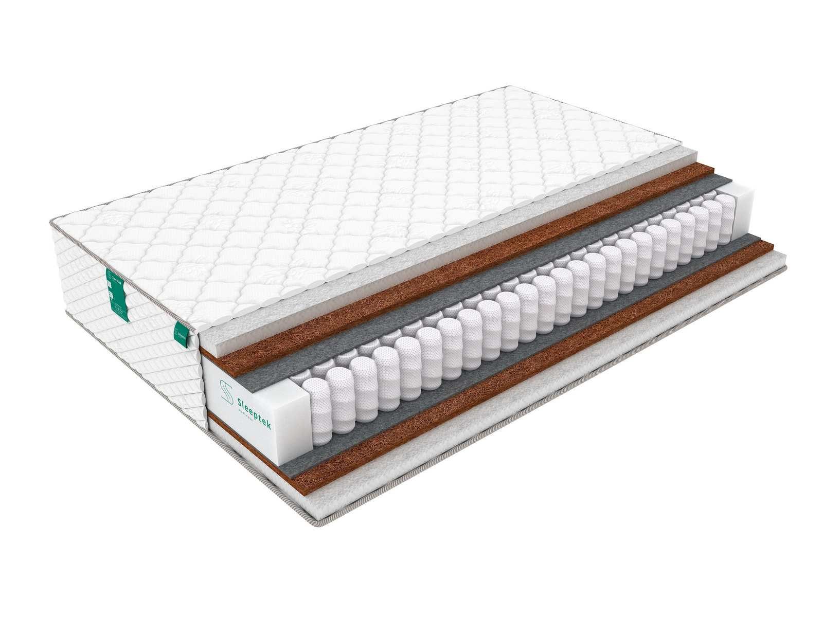 Жесткость сторон в этой модели одинакова – средняя. Наполнителем служит струттофайбер – синтетический материал с добавлением натурального хлопка. Упругий наполнитель помогает расслабляться и вместе с тем поддерживает тело, улучшая кровообращение, койра кокоса – придатё модели необходимую упругость и жесткость.