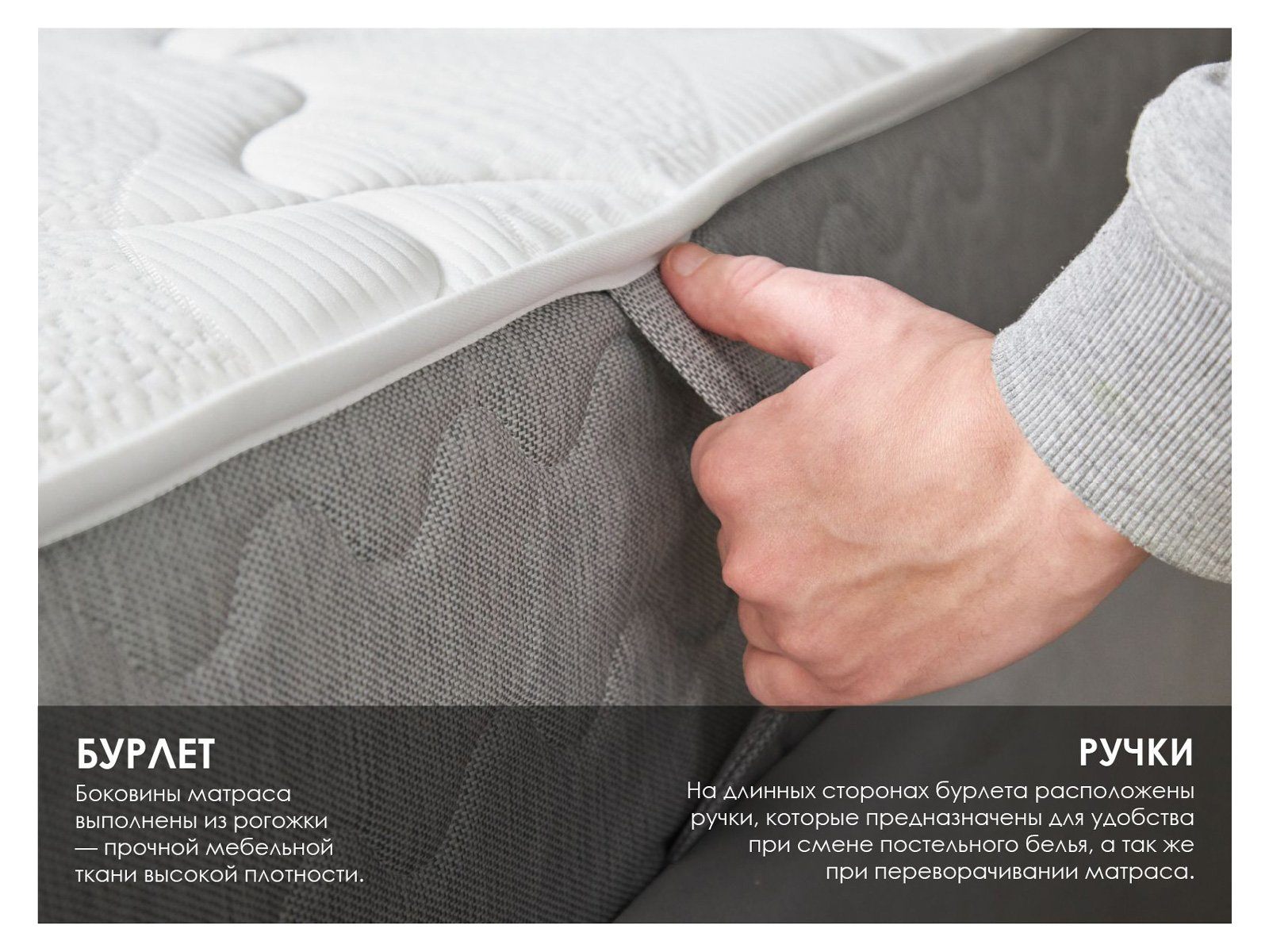 Чехол несъёмный и предусматривает вшивные ручки по бурлету изделия.