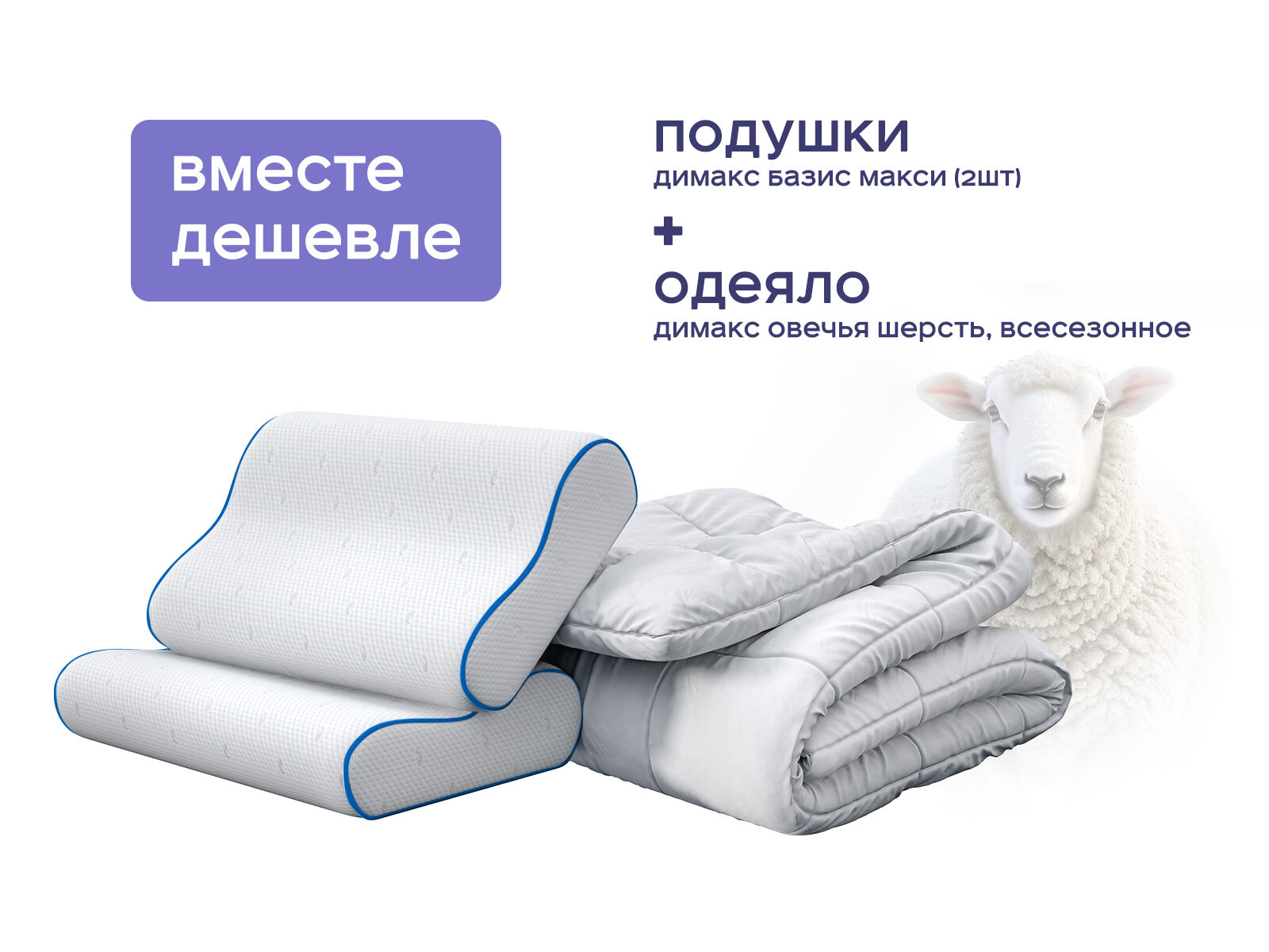 Комплект одеяло Димакс Овечья шерсть всесезонное + подушка Базис Макси 2 шт. — идеальный баланс природного тепла и инновационной поддержки для вашего сна. Покупая набор, вы экономите до 46% и получаете одеяло из натуральной овечьей шерсти с эффектом «сухого тепла» и две анатомические подушки, которые вместе создают полноценные условия для восстановления сил. Забудьте о духоте и затекшей — этот комплект подарит комфортный и здоровый сон.