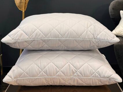 Подушки стеганые с белым атласным кантом по периметру.