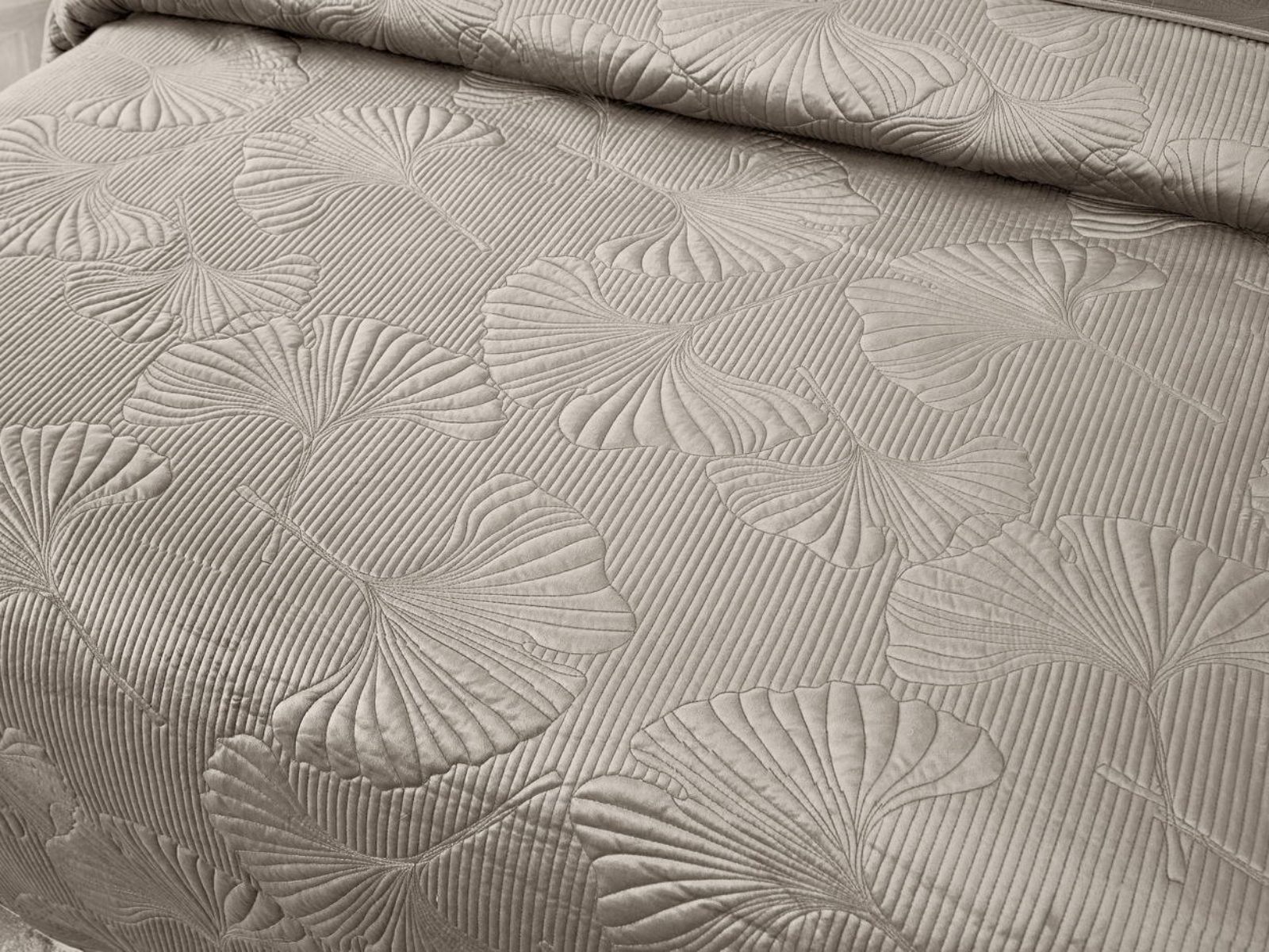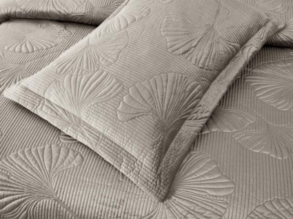 Роскошный растительный орнамент в виде вышивки добавит Вашей спальне элегантности и изысканности. Текстура цветочного узора будет сочетаться с другими элементами интерьера, такими как шторы, подушки, ковры и т.д.