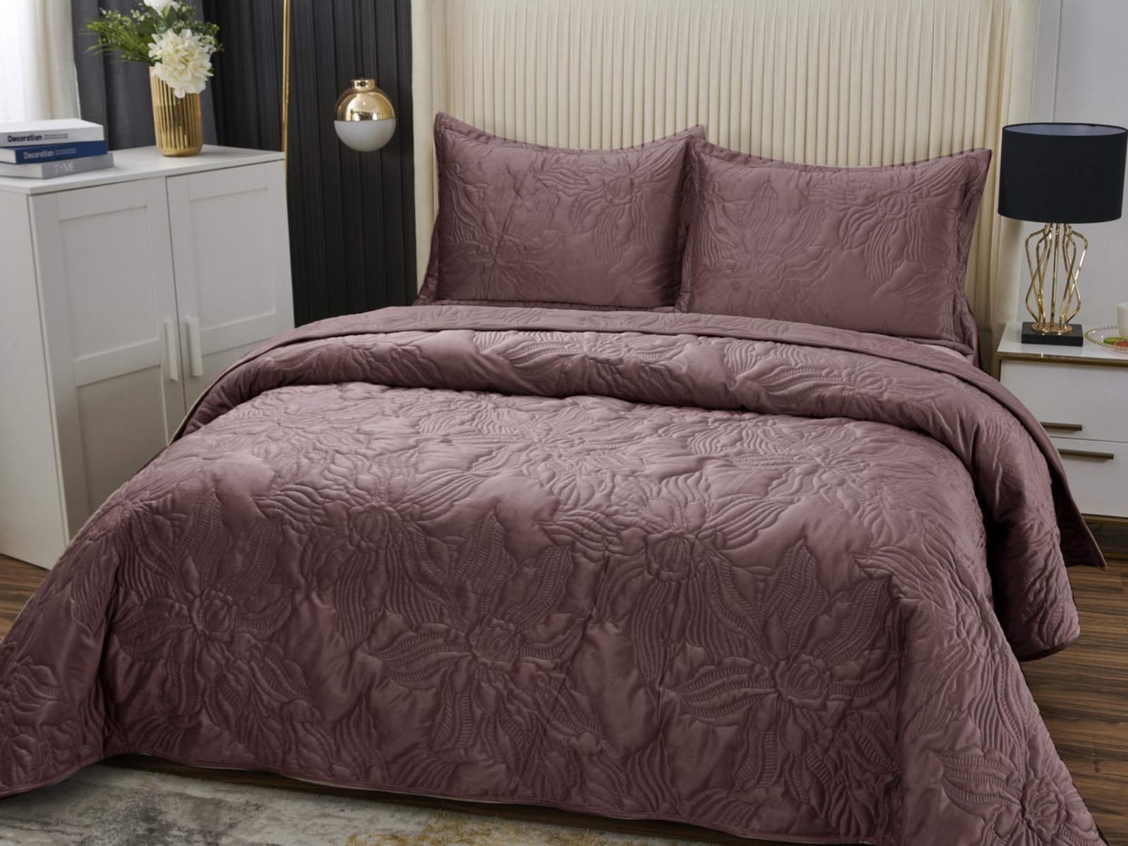 Велюровое покрывало Элис – это прекрасный подарок, который можно сделать своему дому. Декоративная строчка в виде цветов орхидеи подчеркивает утонченность изделия. Покрывало выполнено в восьми трендовых цветах, оно подойдет ко многим интерьерам.