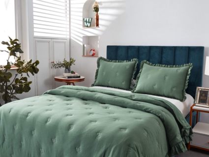 Изделие представлено в пяти цветах: белый, малахит, бежевый, пепельная роза и фиолетовый. Вы сможете подобрать покрывало под любой интерьер.