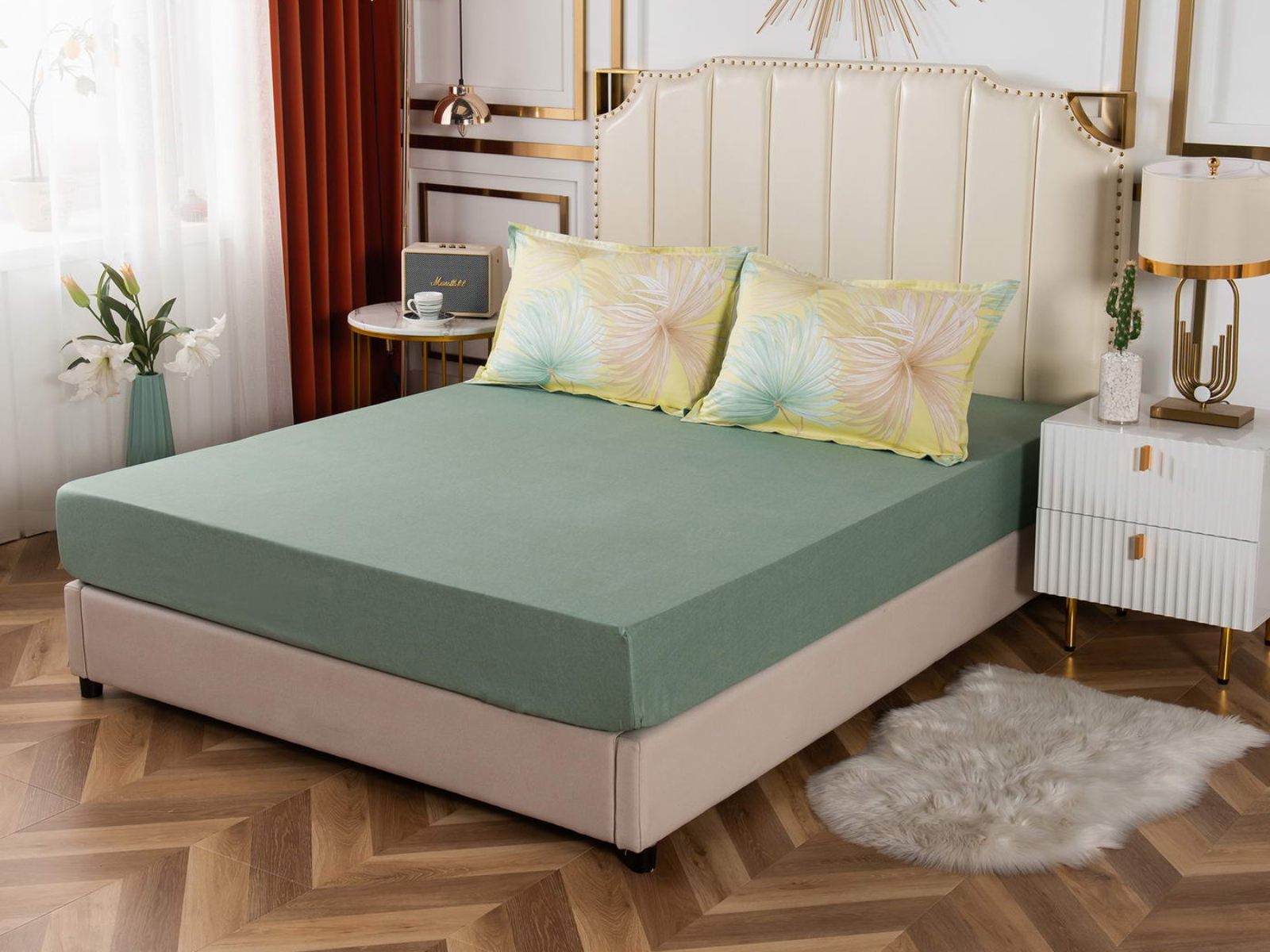 Удобная и практичная простынь на резинке не будет топорщиться и сбиваться во сне. Подойдет для матрасов высотой до 30 см.